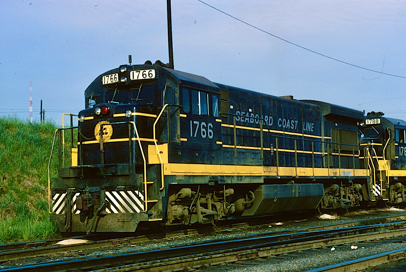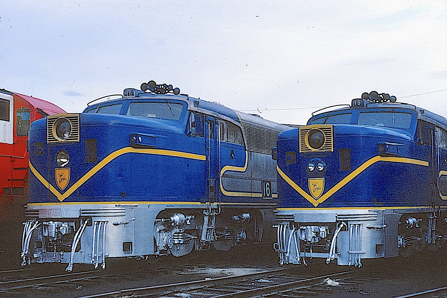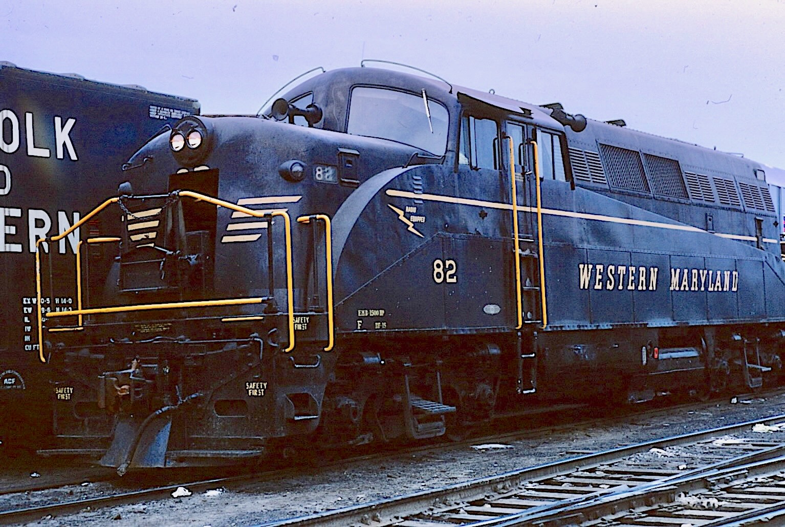 Prior railfan reports had stated that the Delaware & Hudson's Alco PAs were being leased by the Western Maryland. Hence on the way back to Detroit, a stop at the railroad's engine facilities in Cumberland, MD was required (regardless of dark gray clouds and intermitten drizzle which persisted). In addition to the two passenger Alcos, there were also RS3s and a pair of nicely positioned FAs. An EMD-built BL2 was also a pleasant surprise; as was finding one of the "Circus" geeps.  |