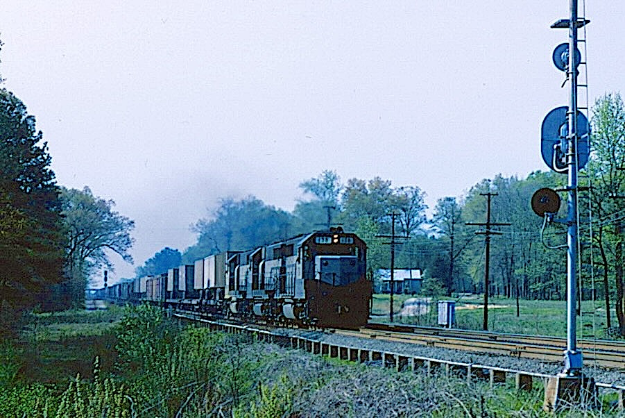 An hour later, we were at the RF&P-C&O diamond in Doswell, VA, waiting for the northbound passage of the Auto Train. A headlight appeared, but it belonged to RF&P GP35 #131 with a short manifest. A slightly late Auto Train was not far behind; it was led by U36Bs 4001 & 4000. The chase back towards D.C. was largely unsuccessful until the U-Boats slowed outside Lorton  |
