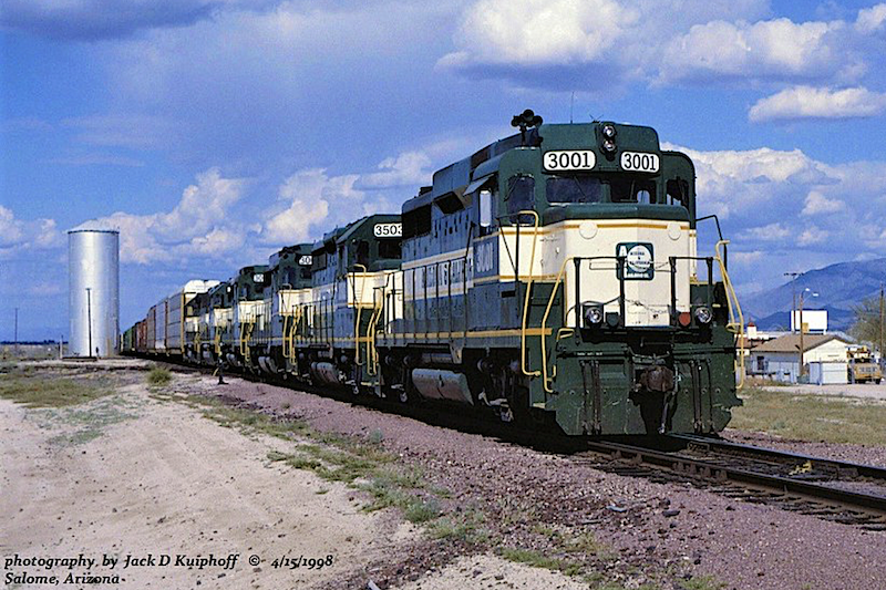 In terms of numbers, production of the four-axle EMD model stopped at 948 locomotives; two of which were built by General Motors Diesel Division, the Canadian subsidiary. Although buyers of the 2250-hp locomotive were predominantly Class 1, one went to short-line operator Toledo Peoria & Western (#700) and nine to industry's Phelps-Dodge (#24-32). The decades-long popularity of the 2250-horsepower EMD can be found in the hundreds, perhaps thousands of railfan photographs that depict GP30s at work on mainlines across the United States, and to a much lesser degree in neighboring Canada, Although mostly relegated to serve on the rails of today's American short-lines, the GP30 has lost little of its luster or favor. The following photographs are presented as evidence. | |||||||||||||||||||||||||||