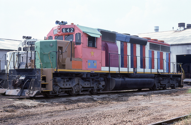 ![]() SD40-2 "snoot" 682 on 30 June 1985 at Stilwell, OKlaoma Nathan Bailey photo |