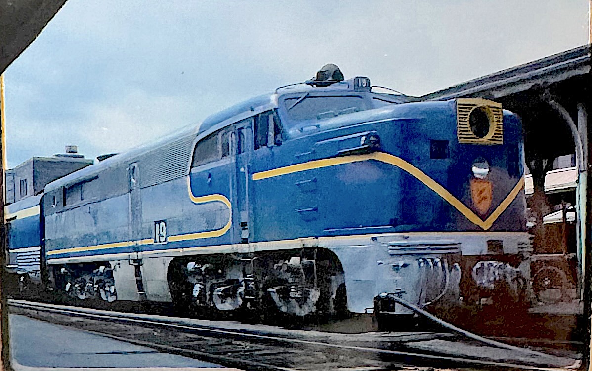 ![]() Delaware & Hudson PA #19 at the station (Denny Custer photo) |