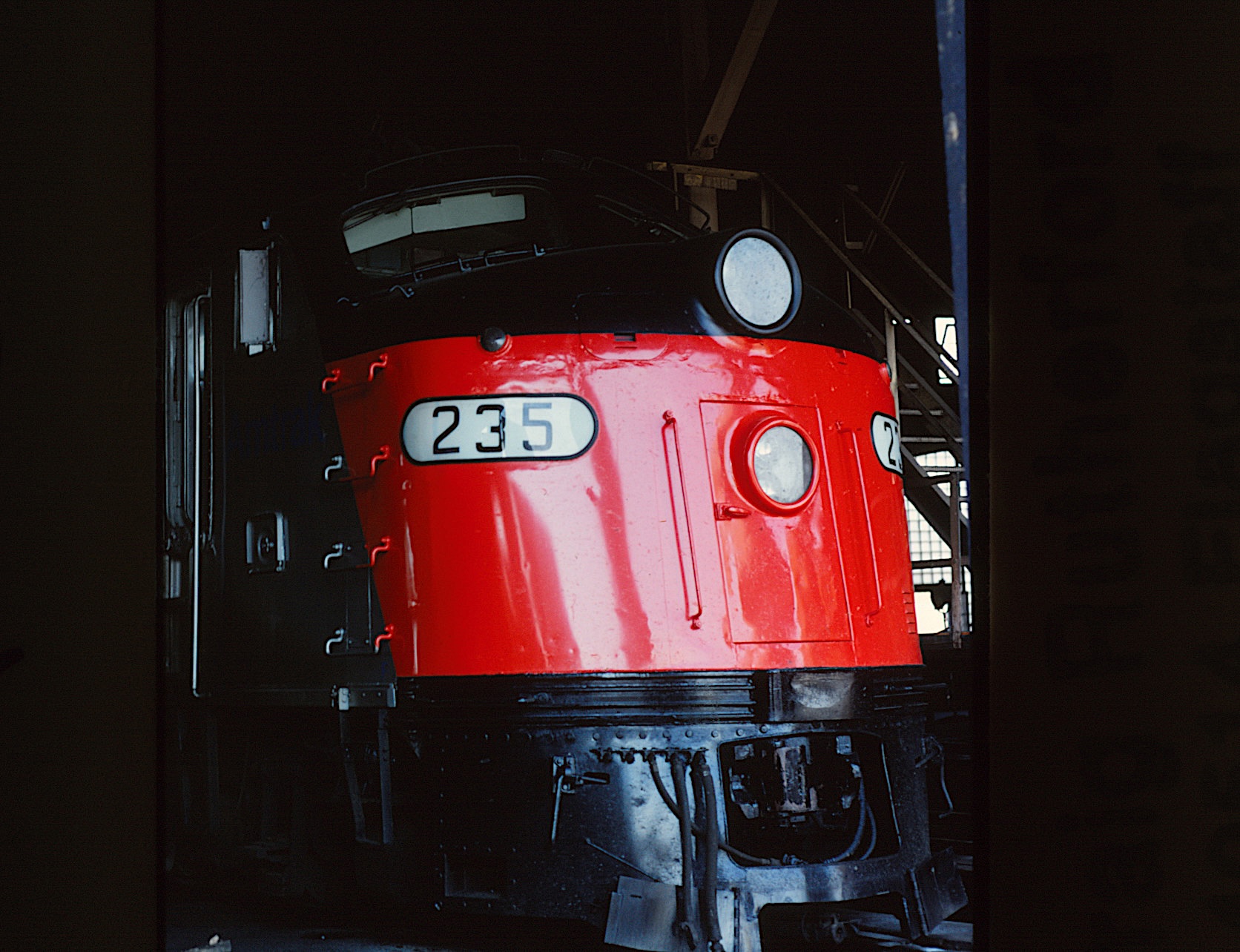 By mid-day, we were back at Ivy City and treated to the surprise of trip. Freshly painted Amtrak GG-1 #902 and E8A #235 were on-hand for the official introduction of the National Passenger Railroad's new colors; the E-unit was parked in the roundhouse. The unveiling had been scheduled for the following Monday, May 1st.  |
