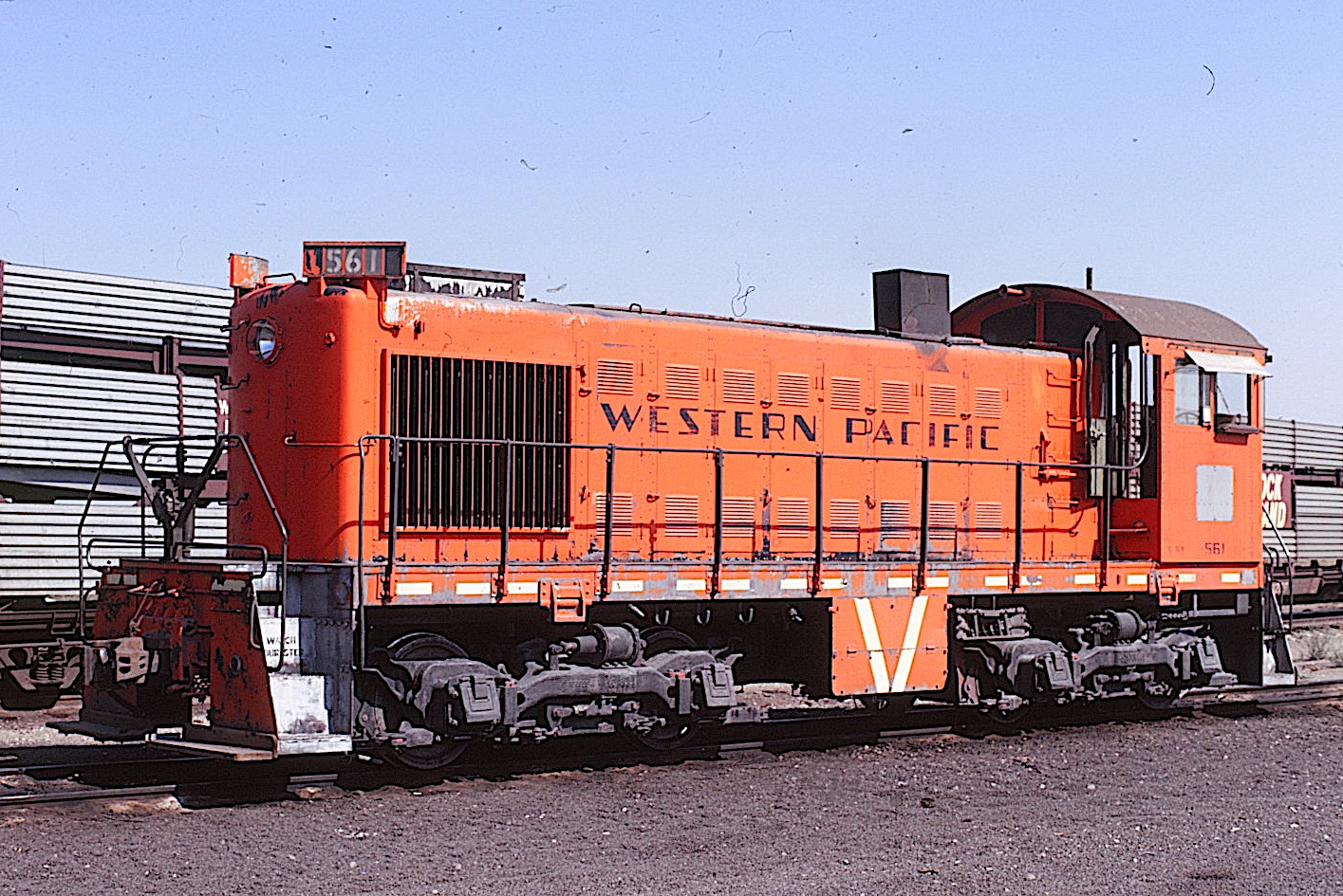 Alco S2 #561![]() WP S2 #561 was equipped with multiple-until controls as were sister units #559-562. The quartet of Alco switchers were delivered in early February of 1950; the total price tag was $410,700. This Tom Chenoweth image shows the #561 at Stockton, CA on 28 May 1972. (R. Craig collection) |